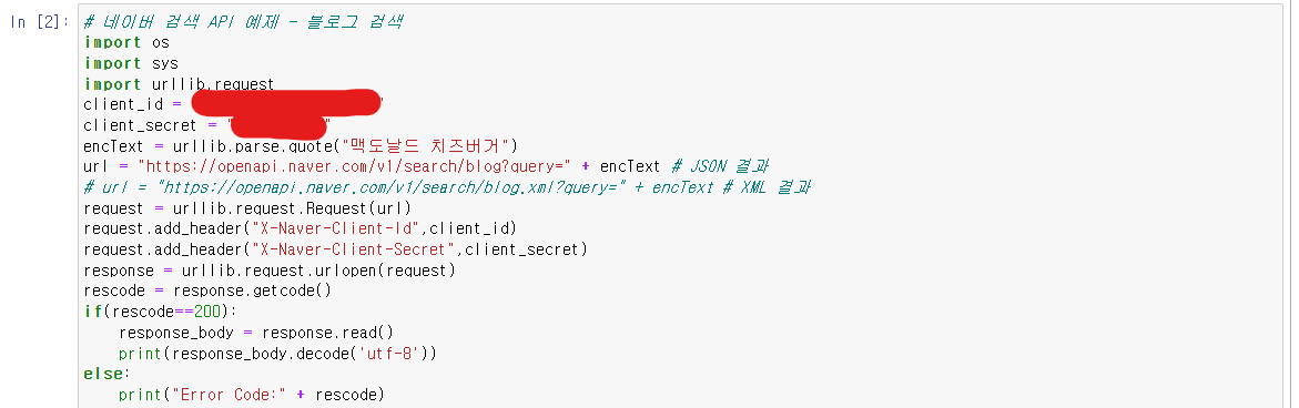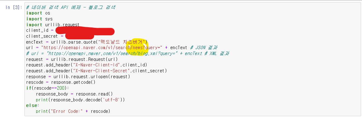 # url = "https://openapi.naver.com/v1/search/blog.xml?query=" + encText # XML 결과