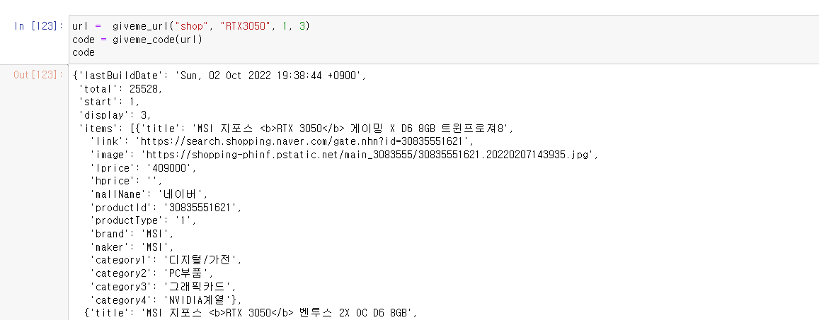 | 네이버 API를 이용해서 그래픽카드 특가를 노려보자 (2/2) (0) | 2022.10.03 |