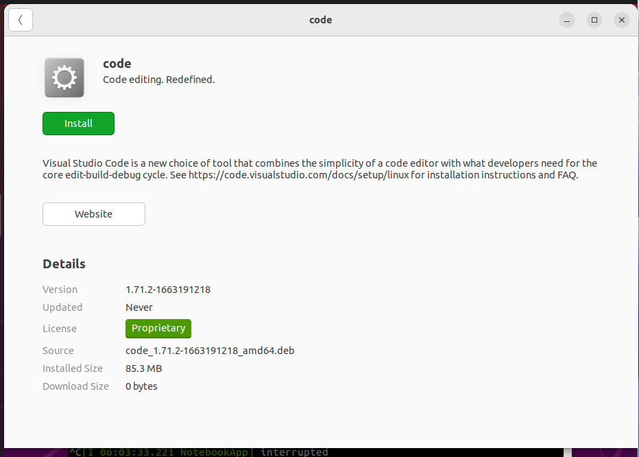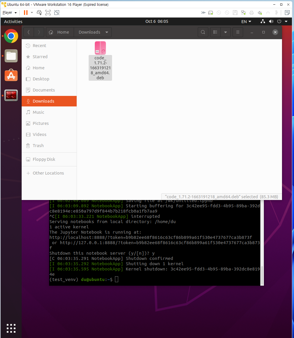 sudo apt install ./Down (탭누르기) / code (탭누르기)