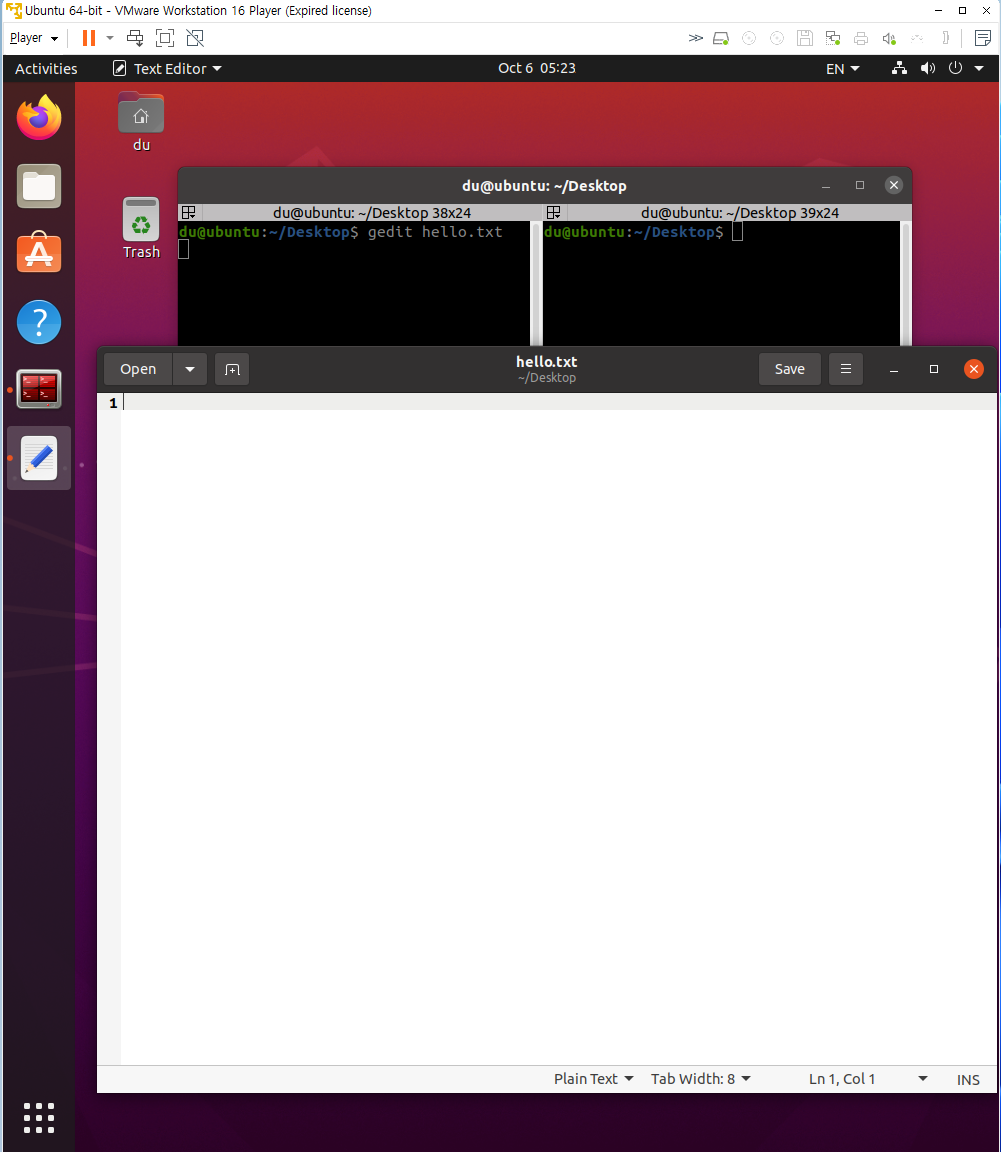 왼쪽에서 메모장 편집기를 띄우는 경우, 터미널을 새로 띄우지 않는 이상