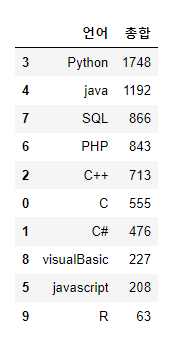 - SQL의 순위가 3위에서 5위로 내려갔다.
