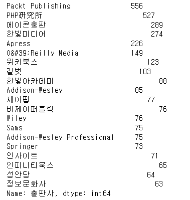 문제1 : 상위 10개의 출판정보를 수집하세요.