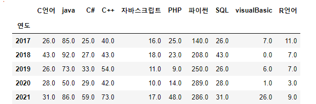 R_data_pivot.rename(columns={R_data_pivot.columns[0]: "R언어"}, inplace=True)