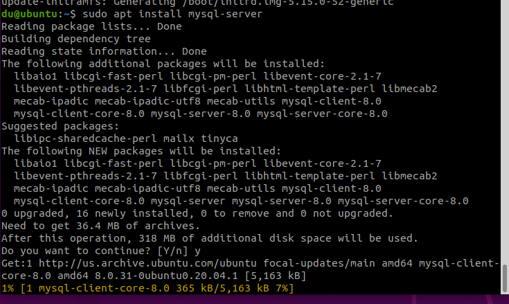 $ sudo apt install mysql-server