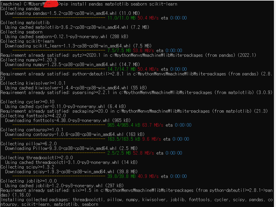 대충 가상환경은 거의 만들어졌고, 이제 여기서 사용할 모듈을 다운 받아야합니다.