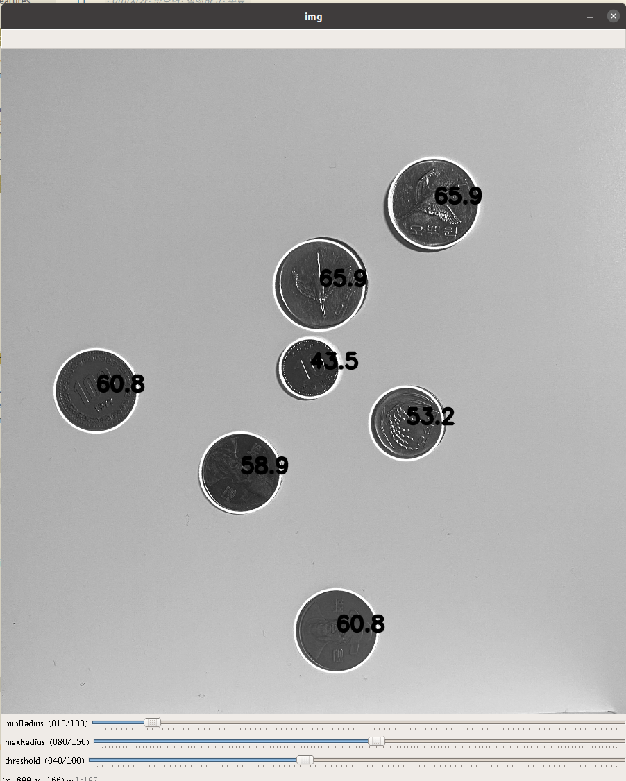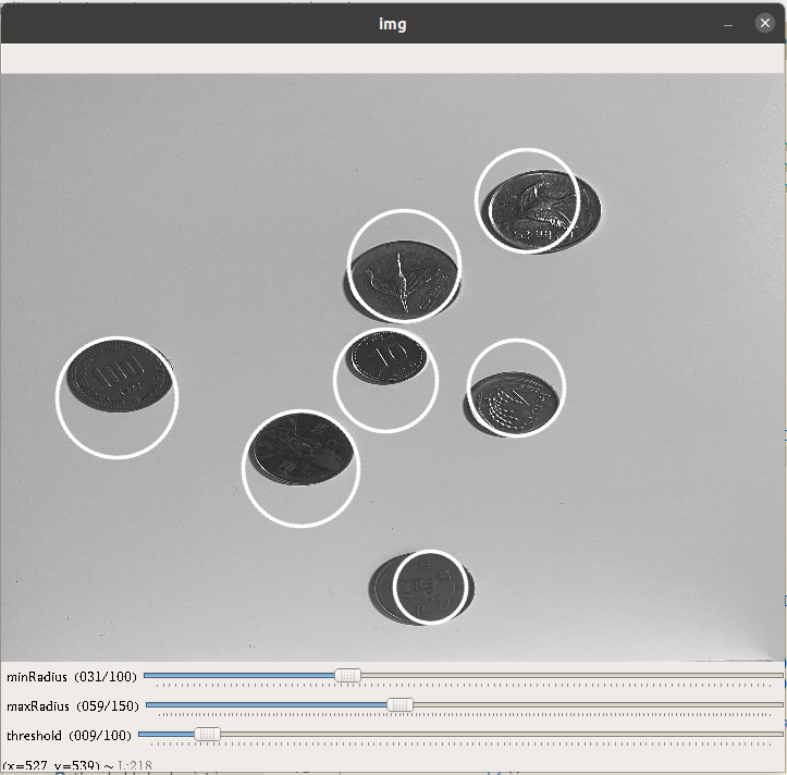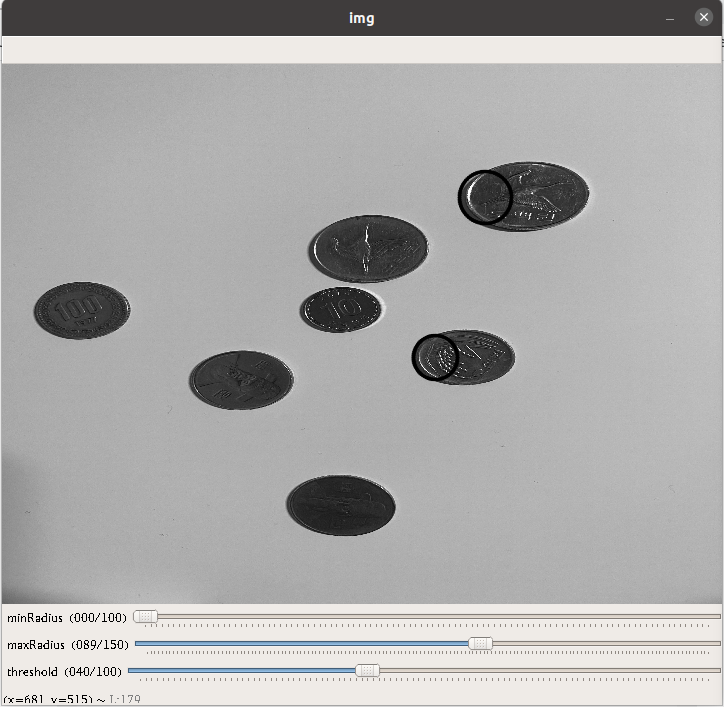 cv2.createTrackbar('maxRadius', 'img', 0, 150, on_trackbar)