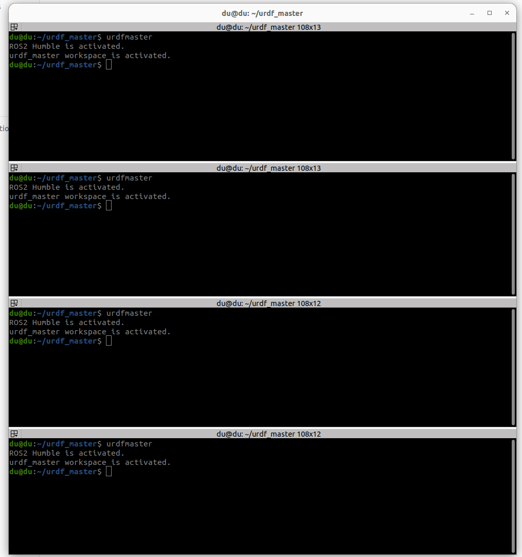 4개의 터미널을 준비합니다. 각각 환경을 불러옵니다.