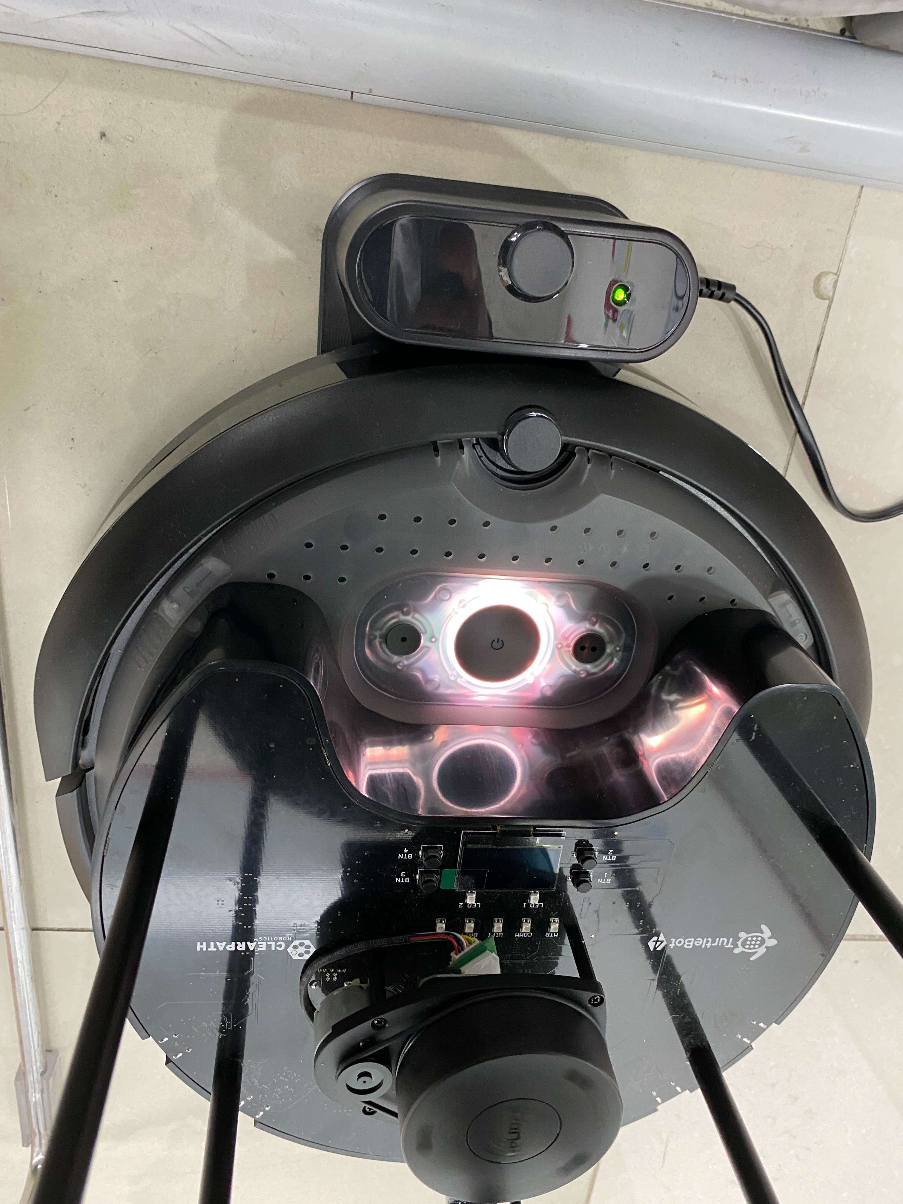 1. 터틀봇을 충전기(station)과 도킹(docking)합니다. 그러면 터틀봇에 전원이 들어오고 켜지는 사운드가 재생됩니다.