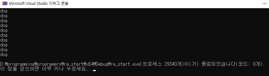 그리고 for문에서 sizeof(dog)/sizeof(dog[0]) 는 dog 객체배열의 크기를 dog 객체 한개의 크기로 나눠라 입니다. 결국 dog 객체의 length 가 나오게 됩니다.