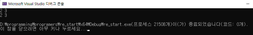 cout << a << " " << b << endl;