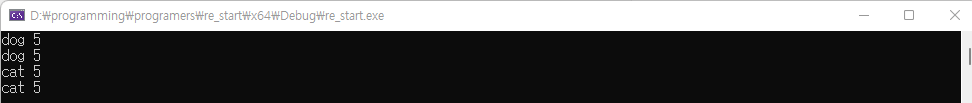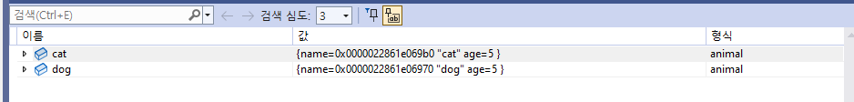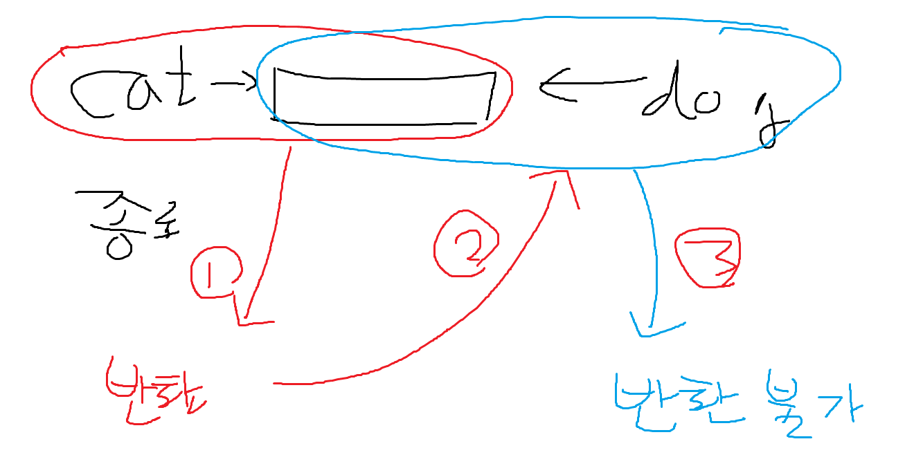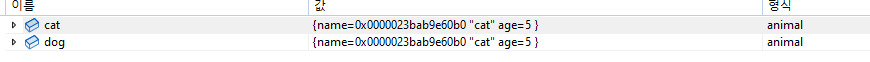 우선 dog 객체를복사해서 cat의 이름을 cat으로 변경한경우이다.