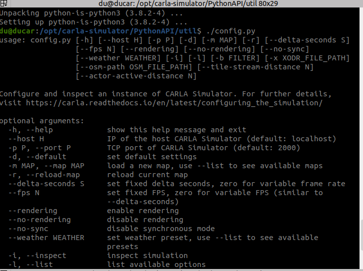 다양한 옵션이 있는데, PythonAPI의 util에 있는 config.py 파일을 건들이면 됨.
