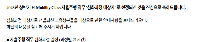 작년에는 인지, 판단, 제어, 통신/네트워크 중에서 2과목만 신청할 수 있게했다고 했는데, 올해부터는 그게 사라지고, 4과목을 전부 수강할 수 있다고 합니다.