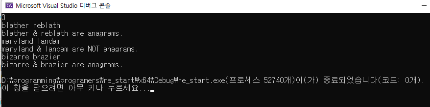 그래서 anargram 이라는 함수를 만들고 다시 뼈대를 만들어 봅시다.