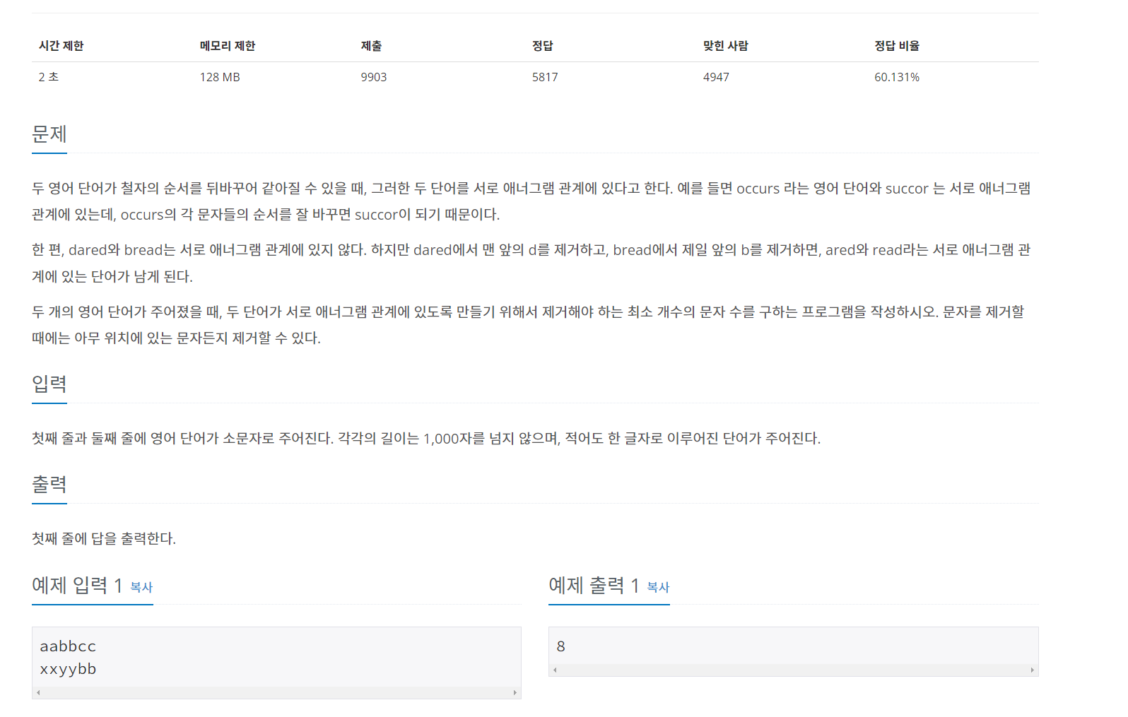 3778번: 애너그램 거리