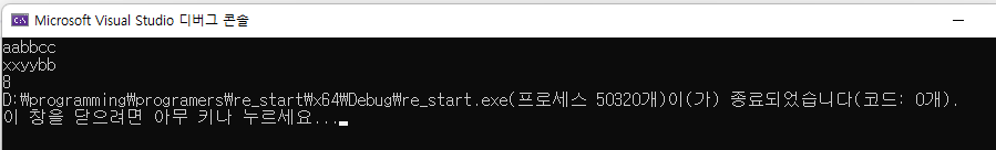 aabbcc와 xxyybb에서 서로 겹치는 단어는 무엇이있는가? 이걸 확인하면 되지 않을까요?