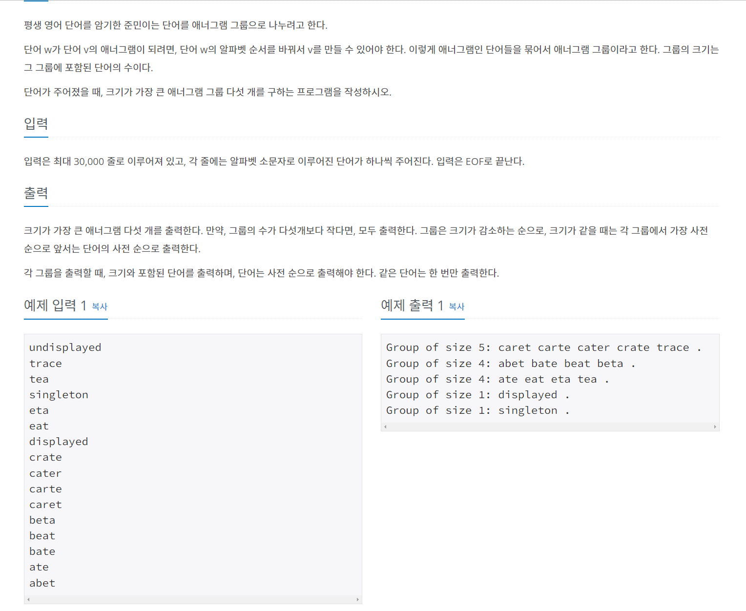 6566번: 애너그램 그룹