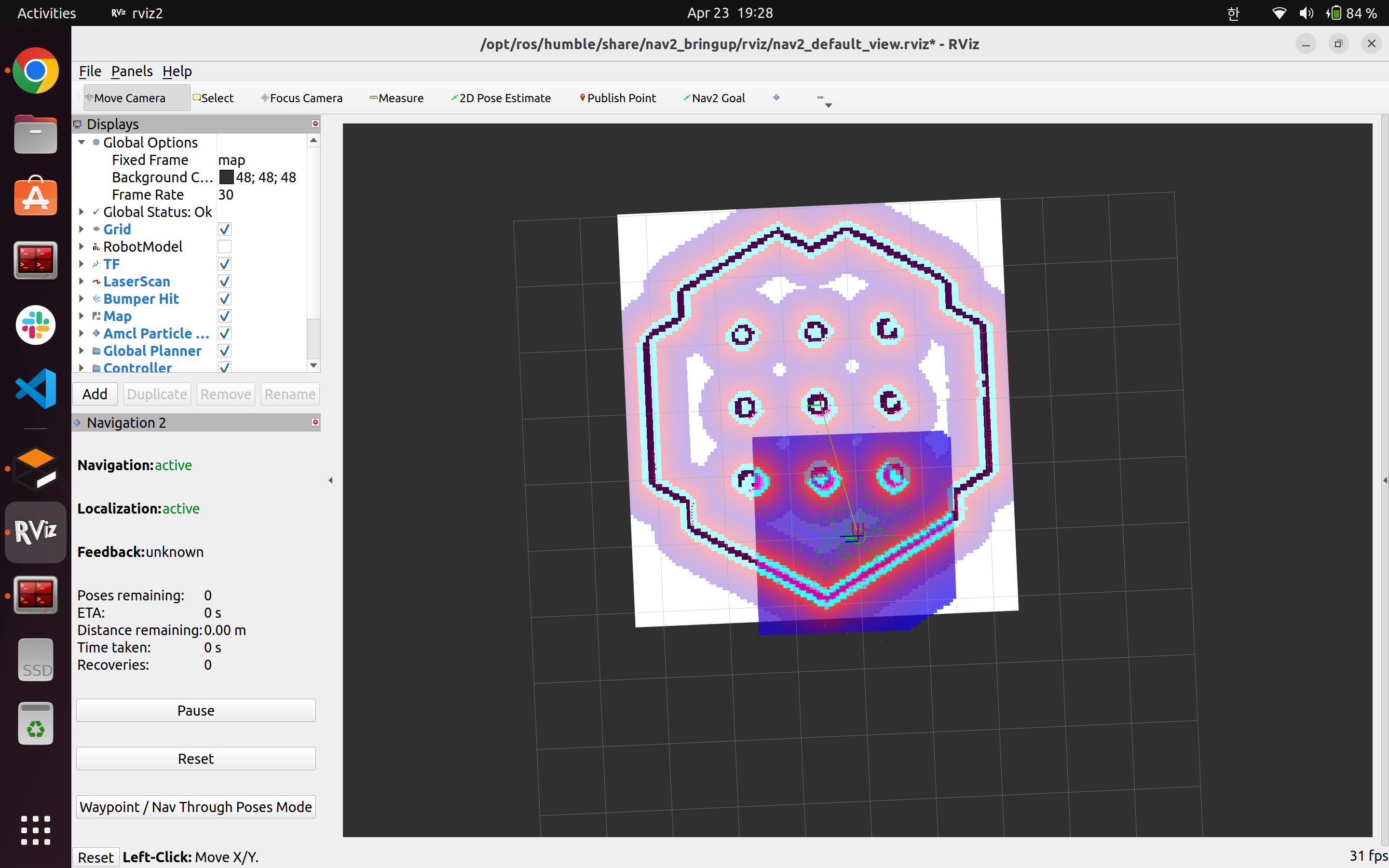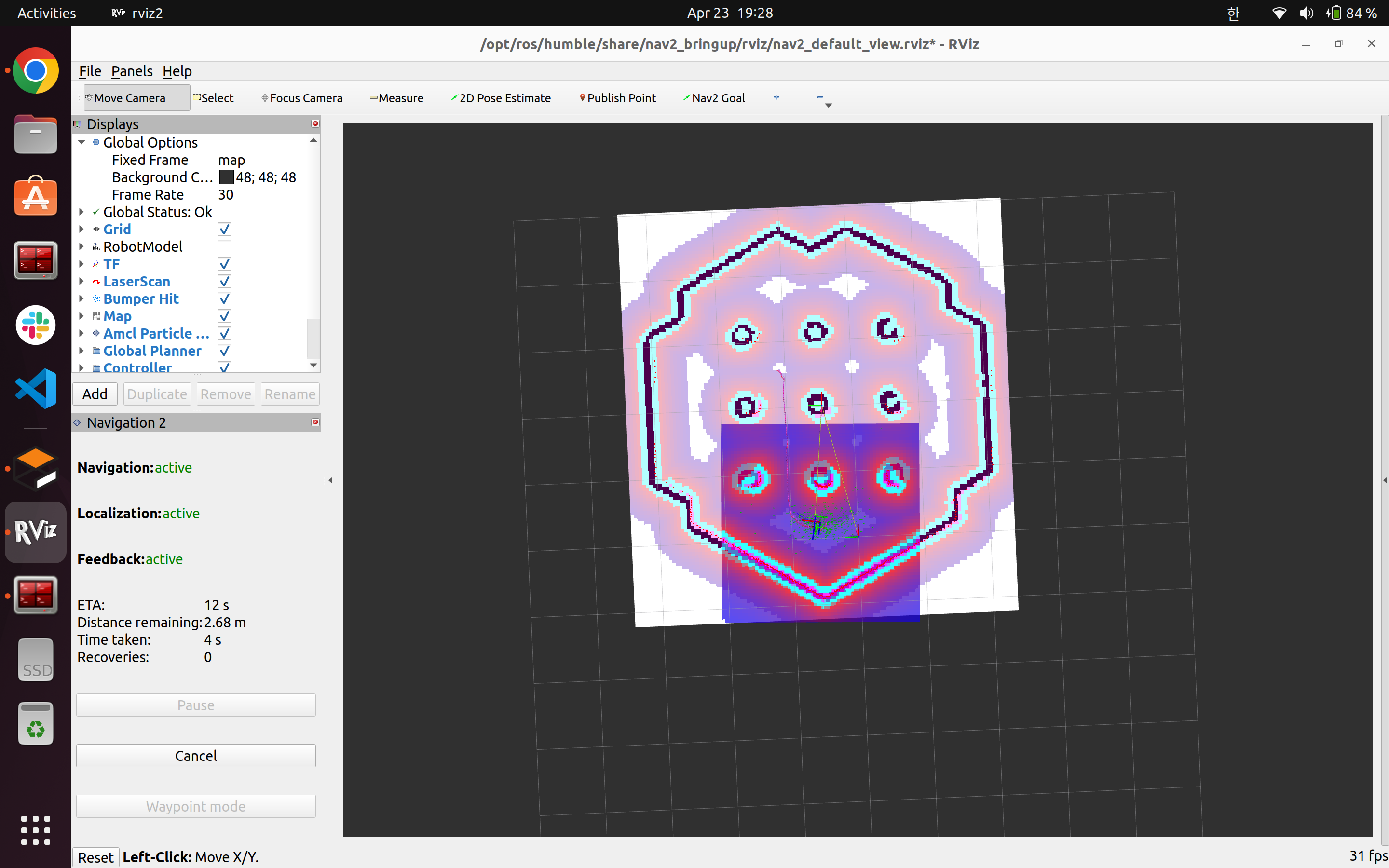 그러면 성공적으로 local cost map과 global cost map이 나옵니다.