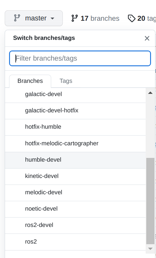 humble 버전을 Github 에서 다운로드 받도록 하겠습니다. 아마 로보티즈에서 만든 패키지가 있을 것입니다.