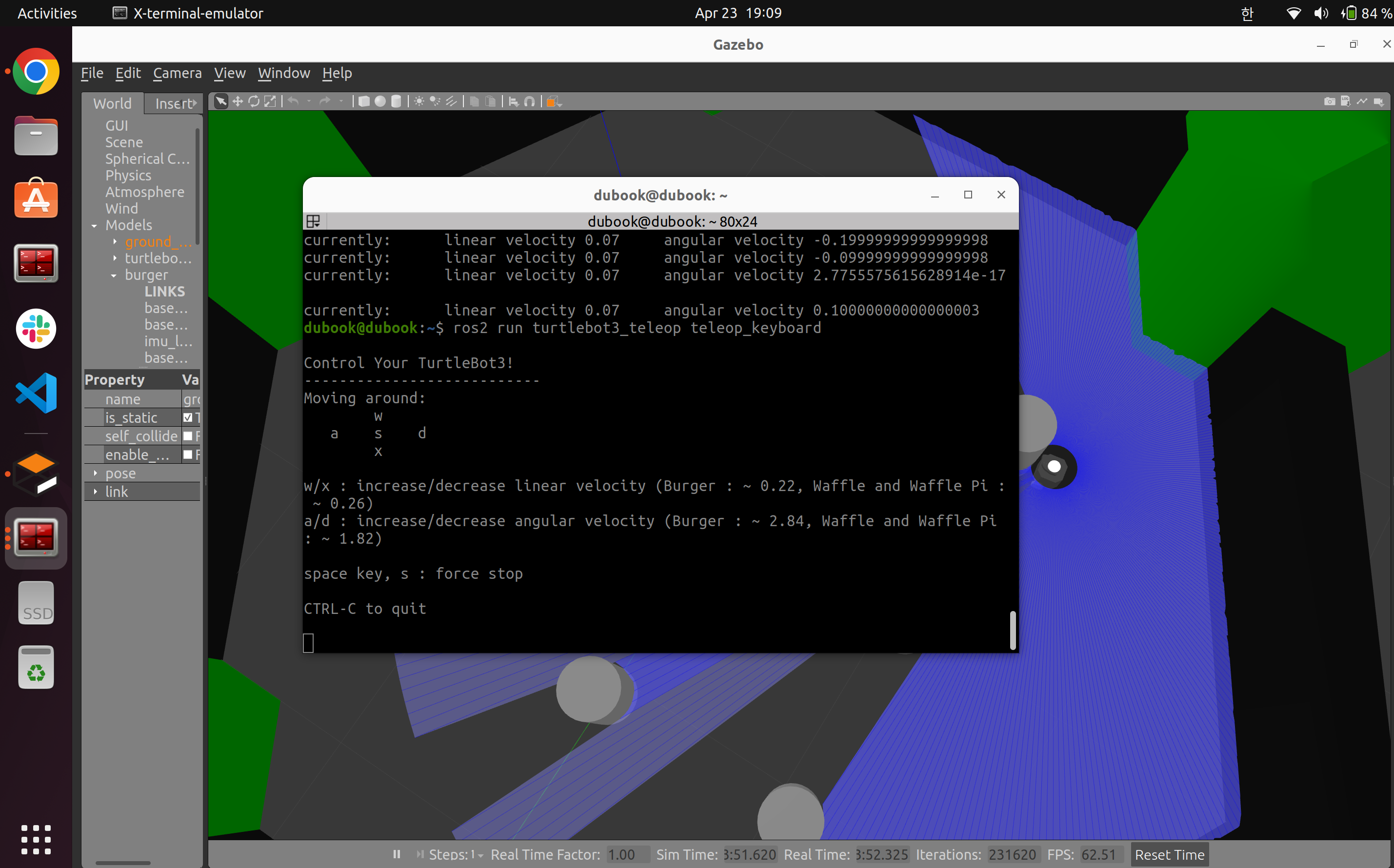이제 간단합니다. teleop으로 터틀봇3를 움직입니다.