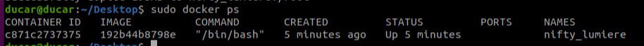 이제 docker로 전송을 해주어야합니다. 우선 container의 ID값을 알아내야합니다. 새로운 터미널을 열고 다음을 입력합니다.