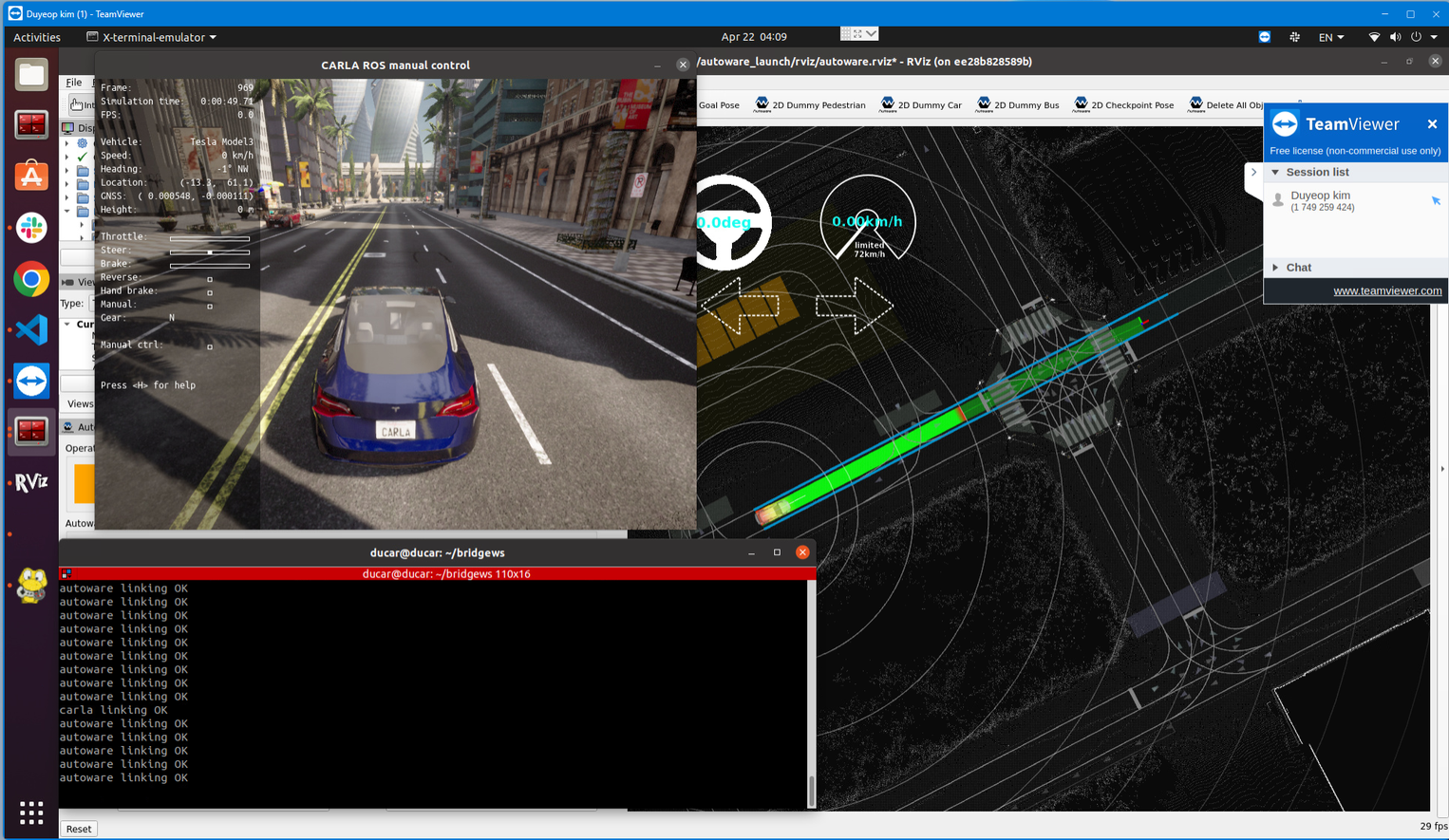 | 3. (CARLA Autoware Bridge) Carla에서 차를 움직였을때 Autoware에 표시 되도록 연결하기 (0) | 2023.04.30 |
