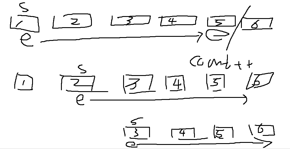 슬라이딩 윈도우는 위에서 언급한 투포인터와 같은 원리라고 합니다.