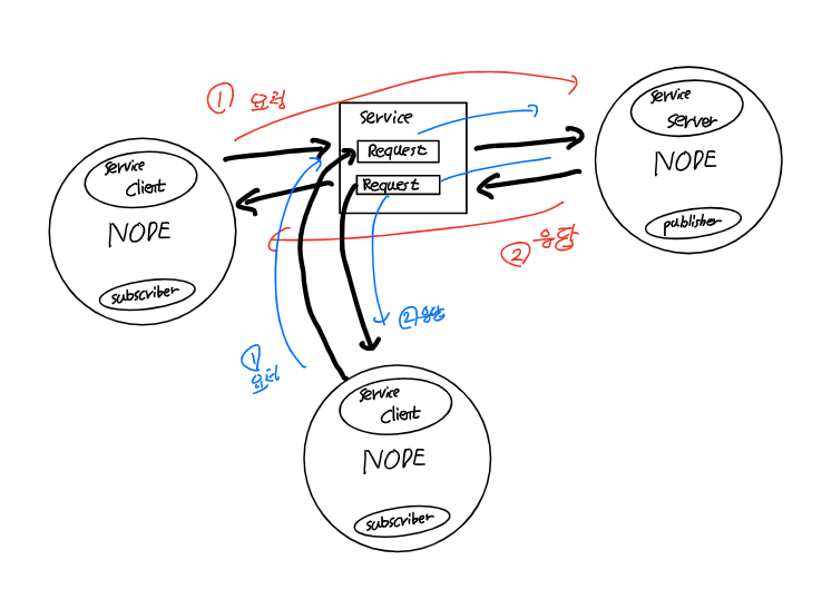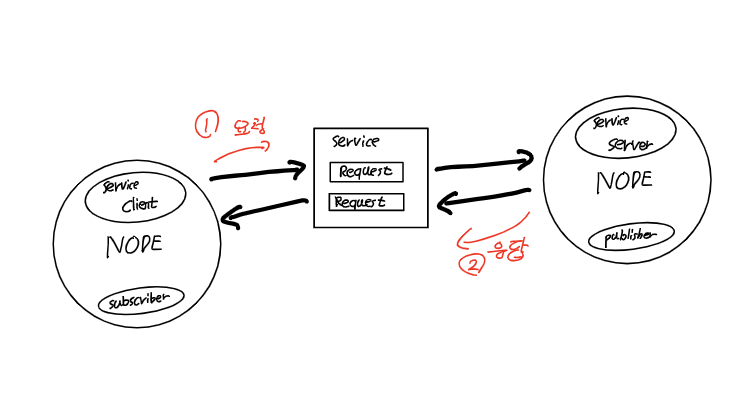 표윤석님의 책에는 이렇게 언급되어 있습니다. 서비스에서 서비스를 요청하는 쪽은 Service Client, 요청 받은 서비스를 수행하고 서비스 응답하는 쪽을 Service Server라고 합니다. 서비스의 요청 및 응답은 msg 인터페이스를 변형한 srv인터페이스를 사용합니다.