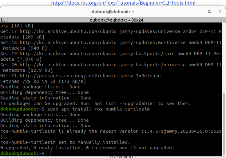 sudo apt install ros-humble-turtlesim