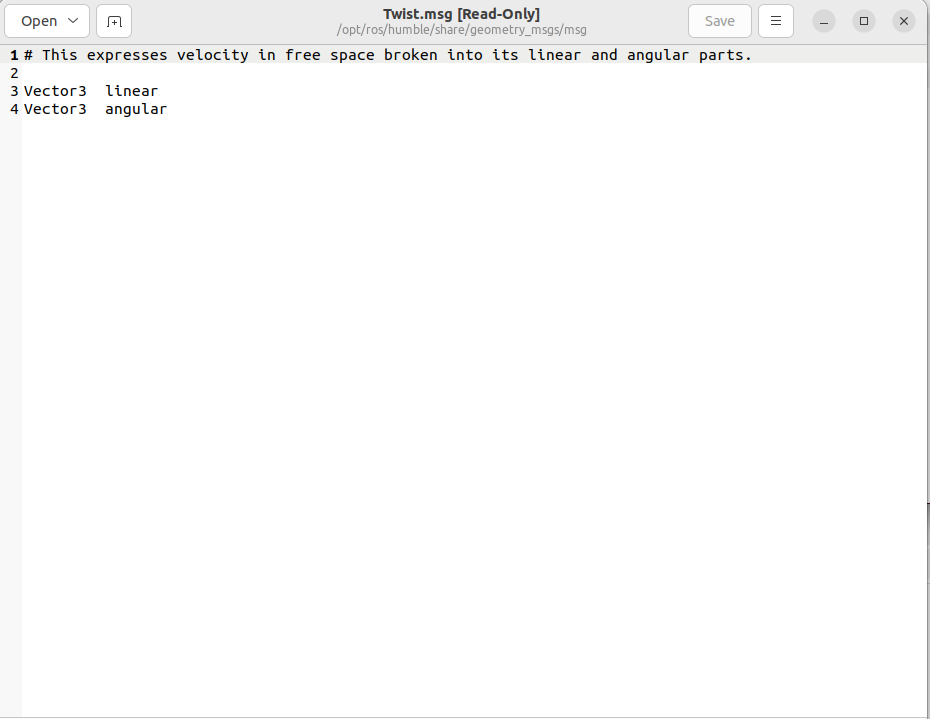 ros2 interface show geometry_msgs/msg/Twist