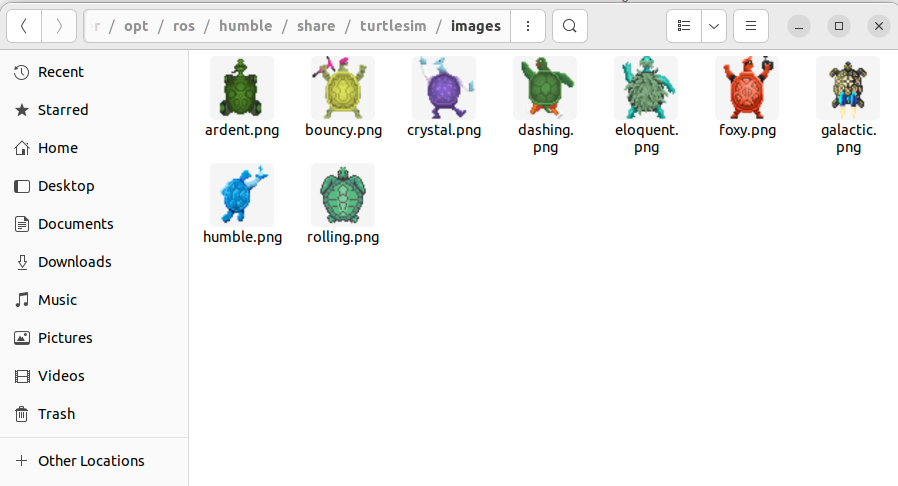 참고로 Turtlesim에 등장하는 거북이들은 각 버전의 마스코트들입니다.