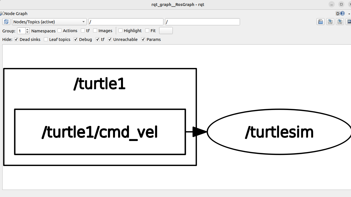 노드와 노드를 Topic이 되었든, Action이 되었든, Service가 되었든 서로 ROS로 연결을 시켰습니다. 내가 cmd_vel (comend velocity)를 이용해서 움직이라고 명령을 내렸는데, 움직이지 않는 경우가 있을 수 있습니다. 그럴때 위처럼 rqt_graph를 확인해서 노드간 연결이 잘 되었는지 확인할 수 있습니다.