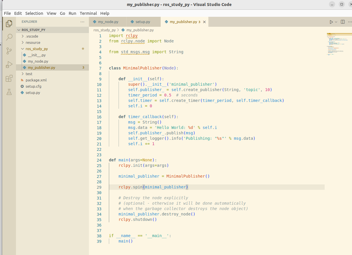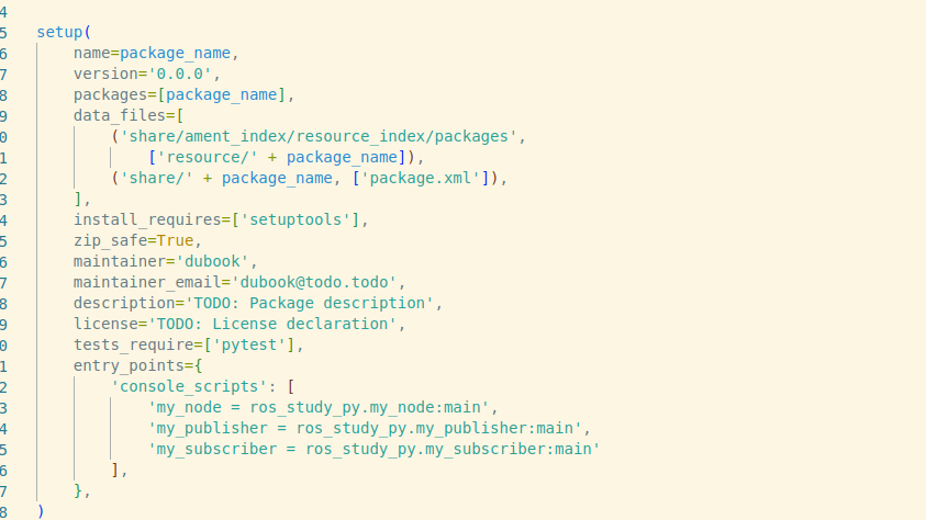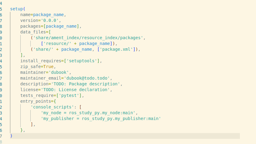 저는 이름을 my_publisher.py로 만들었습니다. 그러면 우선 이를 setup.py에 등록을 하고 다음의 문제를 생각해봅시다.