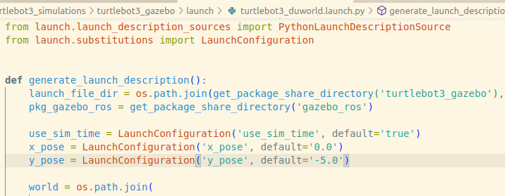 파일 이름을 저는 turtlebot3_duworld.launch.py로 하겠습니다. 그리고 내부 코드를 조금 뜯어주어야합니다.
