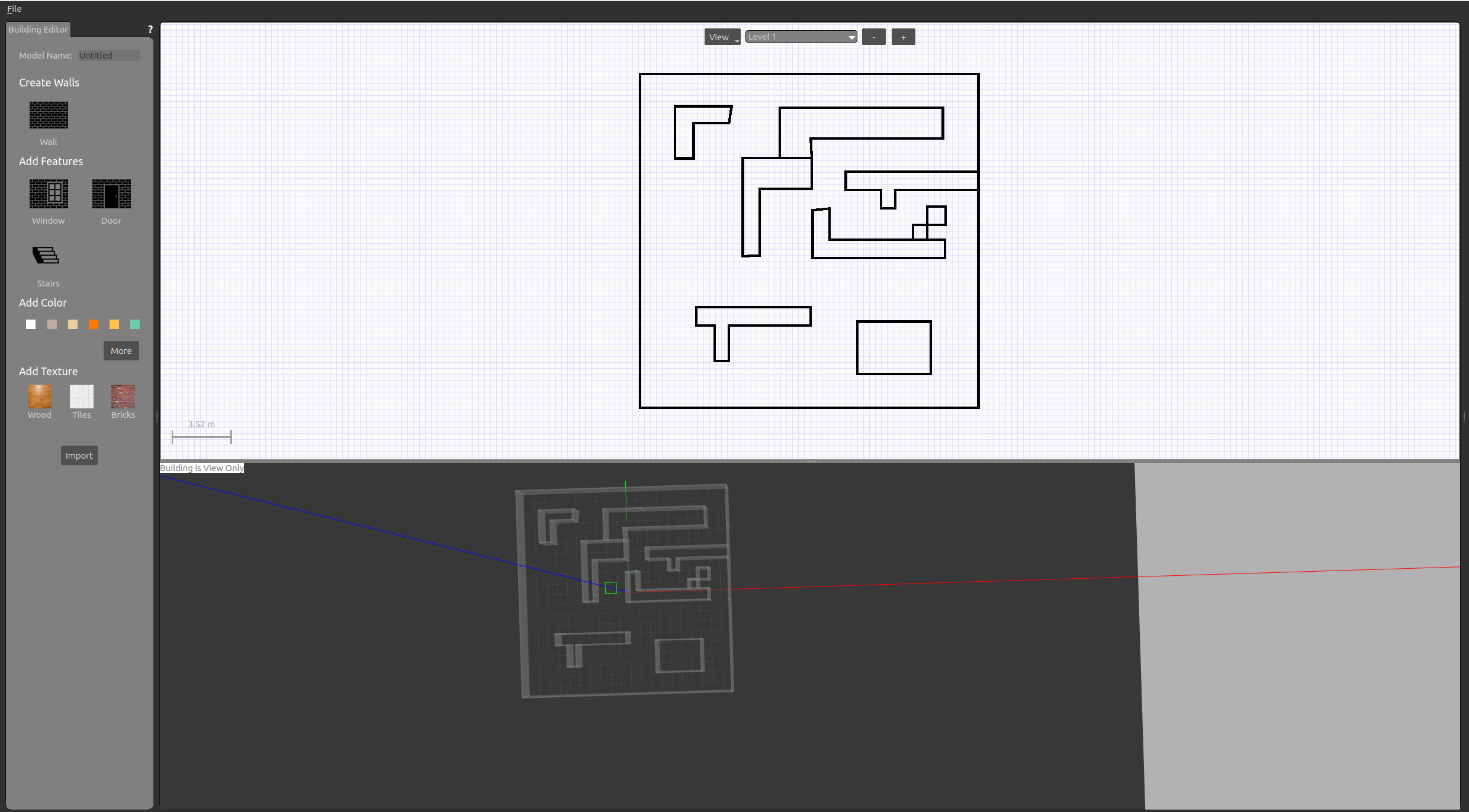 그냥 하얀색 도화지 위에 그림을 그리듯이 만드시면 됩니다. 다 만들었다 싶으면 File에서 save를 해주시면 world 파일이 만들어지는 것을 보실 수 있을 겁니다. 그리고 만들 때 주의할 점이라면 바닥에 타일들이 보이실 겁니다. 그 칸 밖으로 벽이 넘어가지 않게 주의해주세요. 위에서는 맵을 꽉채워서 했는데, 오차가 많이 누적됩니다. 그러니 맵을 조금 축소해주세요.