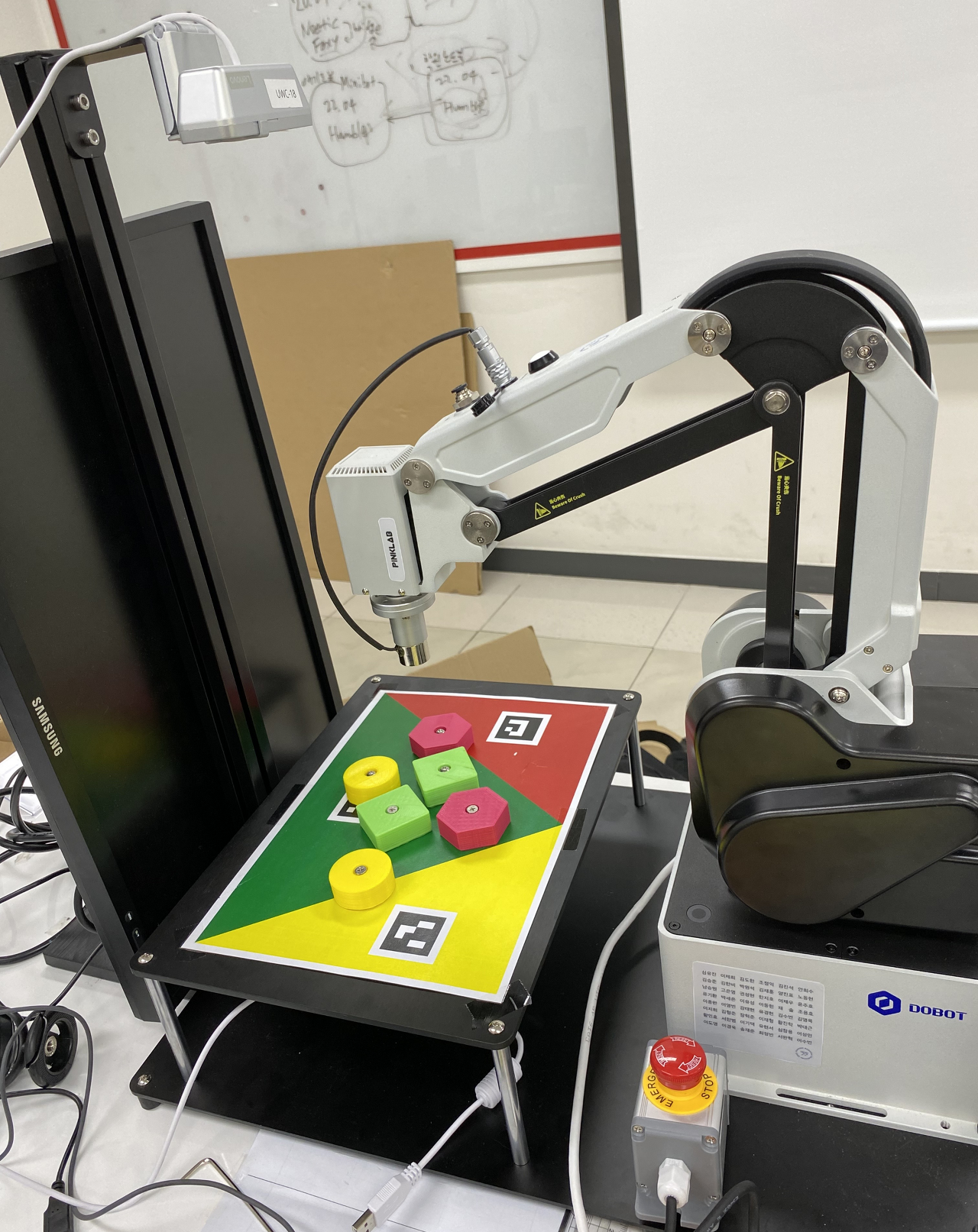 이를 pick and place라고 하는데, 문제만 푸는 것이 아니라, 로봇팔을 움직일 수 있게 세팅하고, 블럭을 인식할 수 있는 방법을 탐구하는 것까지 모두 해결해야합니다.