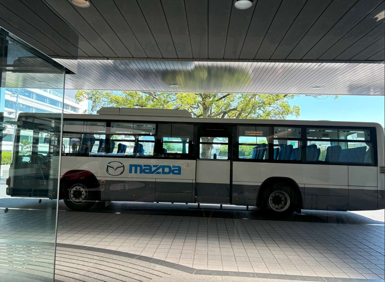 마쯔다 뮤지엄으로 안내하는 버스가 도착합니다.