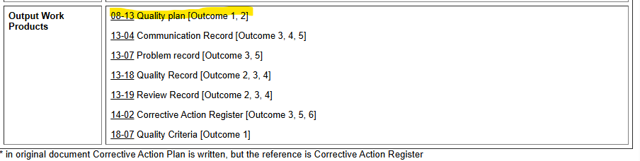 SUP.1 Quality Assurance 도 프로세스 진행하면, Output Work Products로 Quality Plan을 세울겁니다.