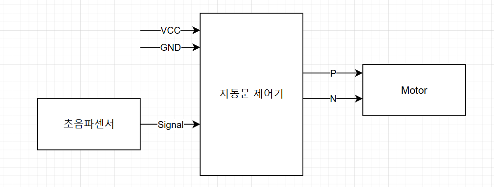 초음파센서 자동문은 정말 간단하게 아래와 같이 구성되어 있다고 생각해봅시다.