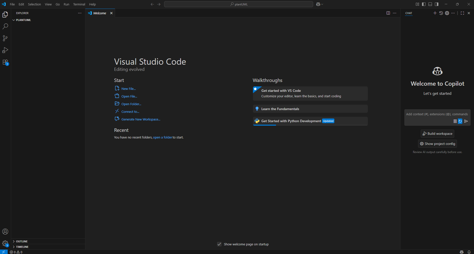 Extension에서 PlantUML을 다운로드해주시고 PlantUml을 사용할 수 있는 작업 공간을 하나 만들어 줍니다.