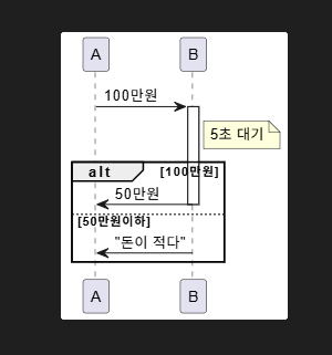 A가 준돈이 100만원이라면 B는 50만원을 주고 50만원보다 적으면 "돈이적다"라고 말을 해봅시다.