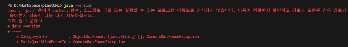 Java를 입력하거나 Java -V를 입력하거나 Java -Version을 입력하거나 해서 아래가 안뜨면됩니다.
