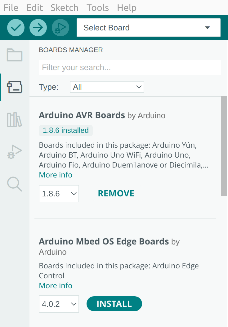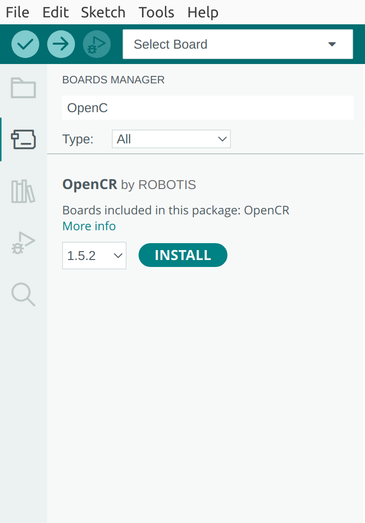 이것을 설치해주면 됩니다. 설치가 완료되면 Tools -> Board -> Boards Manager 에서 openCR을 선택할 수 있게 됩니다.